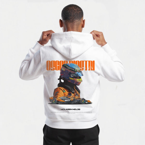 Proudly wear your colors with the Oscar Piastri F1 Signature hoodie, a textile tribute to Formula 1’s rising star. A piece that blends bold graphics and paddock spirit, made for those who live every corner to the fullest.