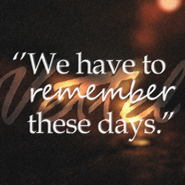 Sur un fond sombre et flouté aux tons chauds, la phrase flotte avec grâce. La typographie mixte évoque le souvenir et la sincérité. Le mot “remember” en manuscrit illumine la pièce comme un souvenir qui refuse de s’éteindre. La lumière douce rappelle les stands, les projecteurs, les adieux.
